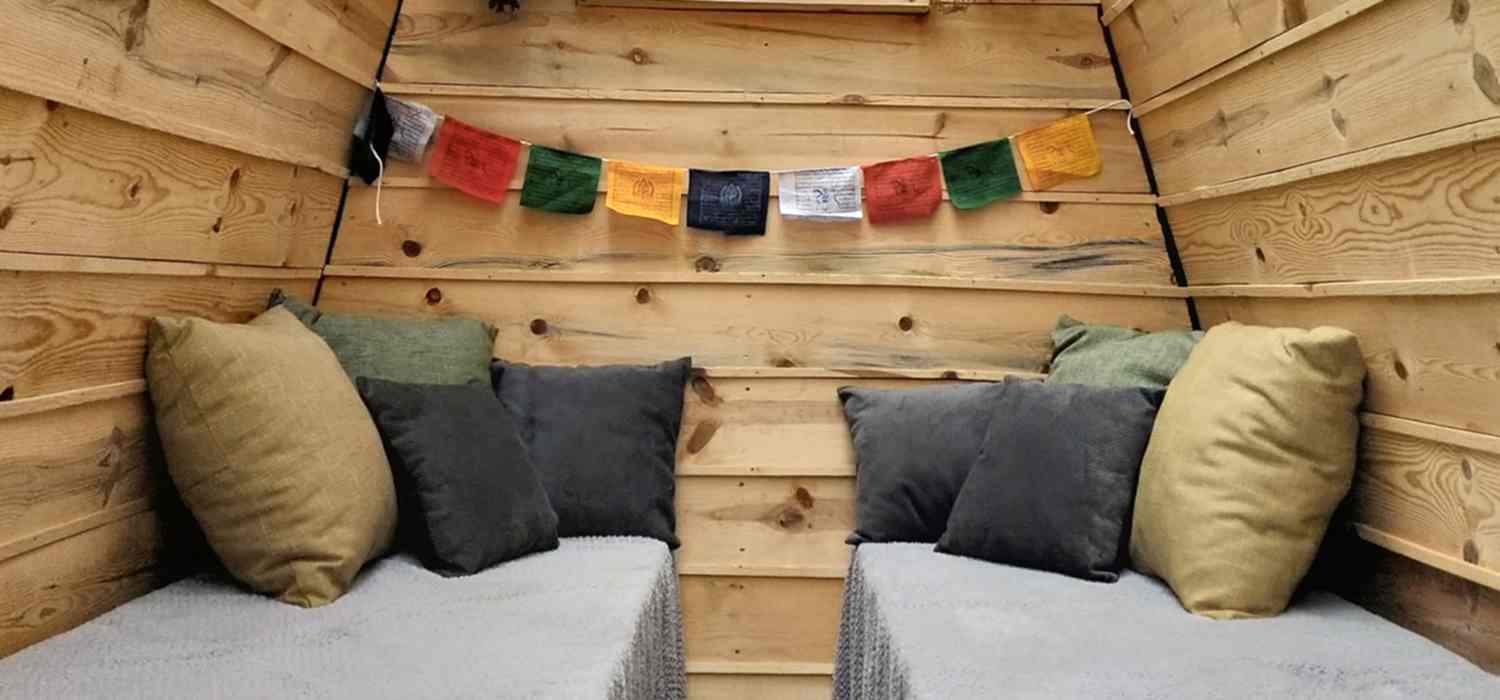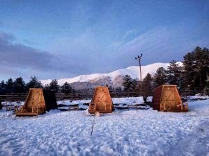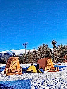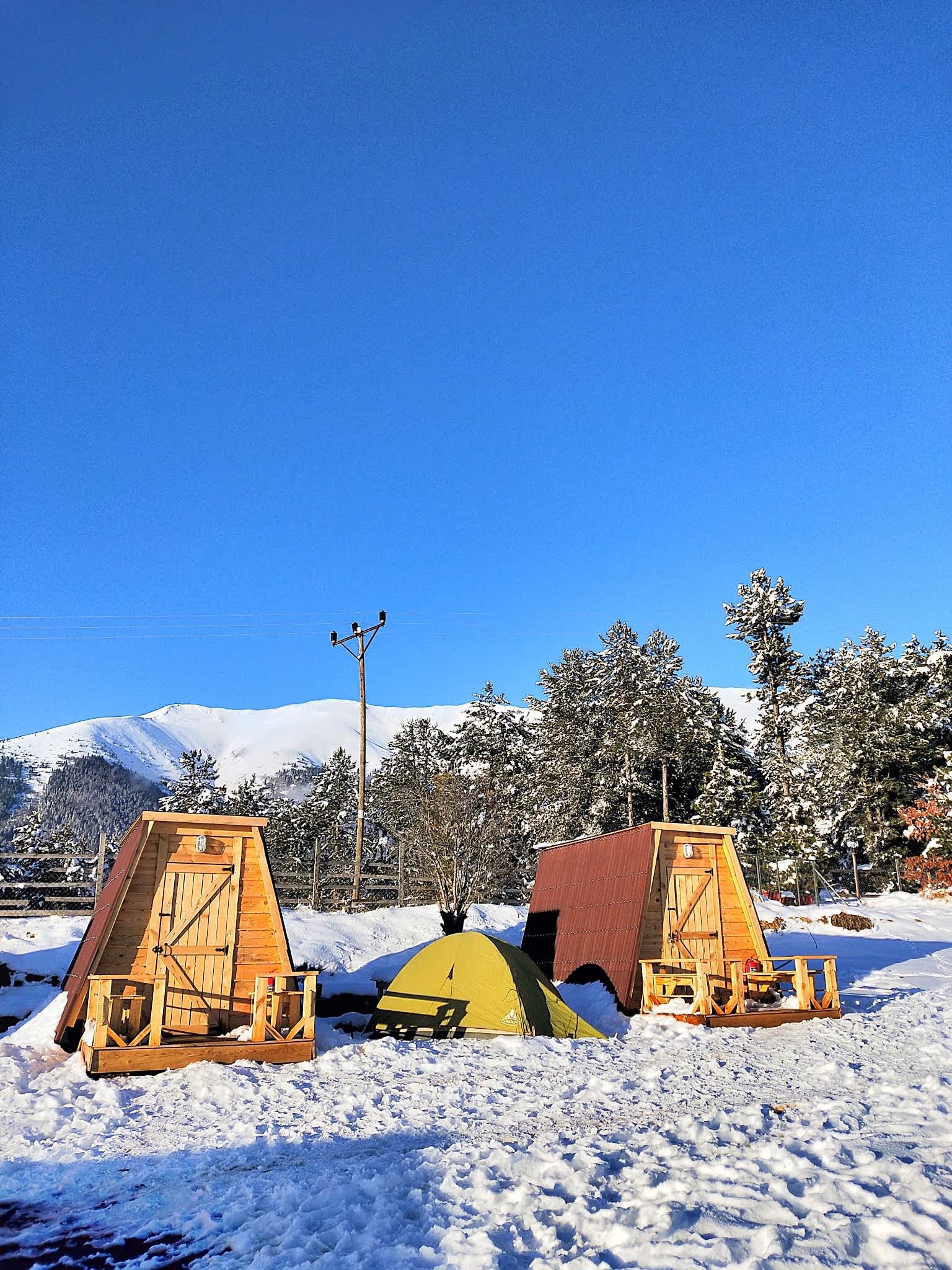 Azerbaycan'da kamp yaparken, güneş ışığını kesen perdeleri bulunan 4 kulübe mevcuttur. 2 kulübede 170*200 cm yatak vardır.