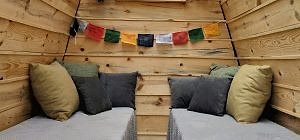 - Kulübelerimizin 2 tanesinde açıldığı zaman 170*200 cm olabilen L köşe takımı, 2 tanesinde birleştirilebilir tekli yatak vardır ( birleştiği zaman 140*200 cm )